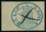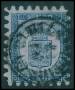 1866-67. Våbentype, 8 Penni, sort på grøn. Annulleret ÅBO 29.8.1874 i blå farve.