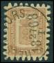1866. 1 mk. gulbrun, Våbentype. Perfekt takning og med smukt stempel. AFA 3.000,-