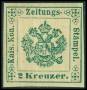 AVISPORTO. Stempelmrk. 1853. 2 kr. grøn uden garanti. AFA 17000,-