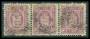 1875. 3 øre lilla i 3-stribe, sjælden. AFA (løse) 900,-