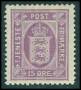 1914. 15 øre lilla med variant: Bredt E i øre.