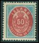 1892. 50 aur blå/rød pragt stp.