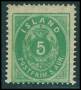 1902. 5 aur grøn I GILDI med forskudt overtryk.