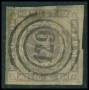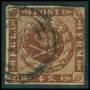 1858. 4 sk. brun med hvide hakker i ø-ramme samt hvide pletter over S.