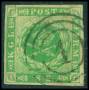 1854. 8 sk. grøn, annulleret med komb.nr.stpl. 46. AFA 800,-