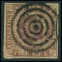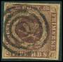1851. 4 RBS Ferslew pl. I-92 pragt stp. Attest Schønning.