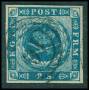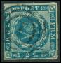 1854. 3 sk. blå med godt nr.stp. 16 Flensborg.