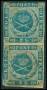 1854. 2 sk. blå i lodret par, beklippet i nord samt rustpletter på bagsiden. Attest Grønlund.