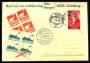 1936. 20+10 øre rød på dekorativt luftpostbrev til Danmark stp. Moss Lufthavn 1.5.36.
