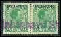 1921. 5 øre grøn i par med linie stp. Kjøbenhavn St.