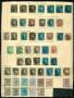 Gammel albumside med klassiske mærker, nogle er klæbet fast og må forventes at skulle vaskes af.