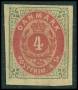 1870. 4 sk. prøvetryk i grå/rød med lim ?