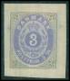 1870. 3 sk. prøvetryk grå/blå uden lim.