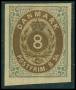 1870. 8 sk. grå/brun utakket med tyndhed. AFA 2500,-
