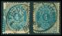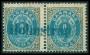 1875. 4 øre grå/blå i sammenholdt par med blåt linie stp. Holmstrup og omv. vm.