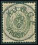 1875. 3 øre ultramarin/grå tryk 7 pragt lapidarstempel Rønne. Trykbestemmelse Jørgensen. Pragt.