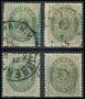 1875. 4 øre grå/blå i antal blandet kvalitet.