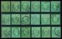 1862. 5 c. grøn. planche med 18 stk. i blandet kvalitet. AFA 1800,-