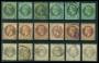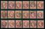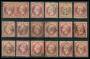 1863-70. 1 - 4 c. Napoleon. Planche med 18 stk. i blandet kvalitet. AFA 7380,-