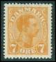 1918. 7 øre orange med variant: Midsterstreg i E sammenhængende med forstreg. AFA 2000,-