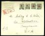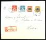 1921. 27/1 kr. i par samt 2 stk. 8/12 øre (højt og lavt overtryk) på R-brev til USA.