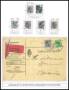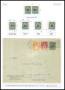 1918. 27/1 kr. blågrøn/rød på albumside inkl. varianter og brev.