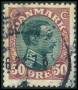 1918. 50 øre vinrød/sort med variant. AFA 500,-