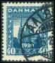 1921. 40 øre blå med hage på 4. AFA 1400,-