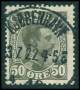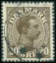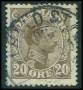 1921. 20 øre brun med variant: Hage på E i øre. AFA 1000,-