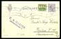 1921. 5 øre brun og 10 øre grøn i par på interssant returbrev til England.