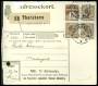 1924. 5 øre brun og 20 øre brun x 3 på adressekort stp. Thorshavn, arkivhul.