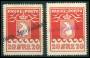 1915. 20 øre rød i lodret par med linie stp. Kolonien Christianshaab.
