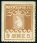 1915. 5 øre lysbrun på kartonpapir. AFA 4000,-