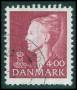 1999. 4 kr. rød med variant: Rød farvet streg over kronen.