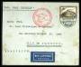 10, 50 pf. luftpost samt 5 pf. grøn på postkort sendt med Zeppelin.