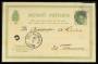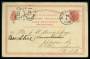 HELSAG. 1894. 3 c. rød svarbrevkort til USA, ægte brugt.