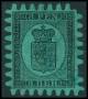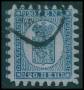 1866-67. Våbentype, 8 Penni, sort på grøn, Gennemstik III. Stemplet.