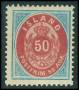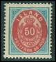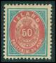 1892. 50 aur blå/rød med krakeleret lim. AFA 10000,-