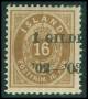 1902. 16 aur brun I GILDI med forskudt overtryk. AFA 500,-+
