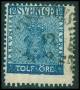 1858. 12 øre blå med variant: Dobbeltramme i syd.