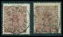 1858. 30 øre brun i 2 nuancer pæne stempler.