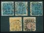 1858. 5 - 50 øre våben sæt i antal og nuancer inkl. 7b,9a,12a. AFA 11540,-