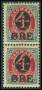 1904. 4/8 øre grå/rød i lodret par med variant: Hage på 4. AFA 640,-