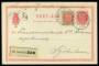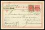 1875. Tofarvet 8 Øre, grå/rød, som opfrankering på 8 øre Helsagsbrevkort anvendt som adressekort for 1 pakke æ Pund sendt fra FREDERICIA, 12.5.1887 til København.