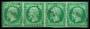 1853. 5 c. grøn i vandret 4-stribe, venstre mærke er let beklippet. Yvert 700 €