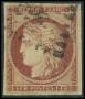 1849. Ceres, 1 Franc, karmin. Flot fuldrandet eksemplar. AFA: 8.000. Attest Sven Grønlund (1969).