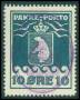 1937. 10 øre grønblå med LUX violet skjold stp. Attest LN.