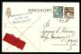 1939. Dronning Alexandrine, 15+5 Øre, rød (par), 10+5 Øre, violet på overfladebrev sendt fra København, 7. aug. 1940 til TEHERAN, IRAN. Brevet er påtegnet ”via U.R.S.S.” og transitstemplet i Sovjetuni...