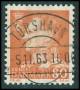 1955. 5/6 øre orange med skudhul i 5-tal.