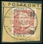 1955. 30/20 øre rød på klip LUX stp. Hundborg pr. Sjørring.